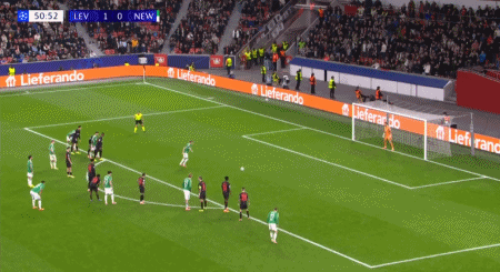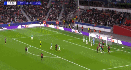 第88分钟,马扎助攻,格里马尔多插射破门扳平比分,勒沃库森2-1纽卡